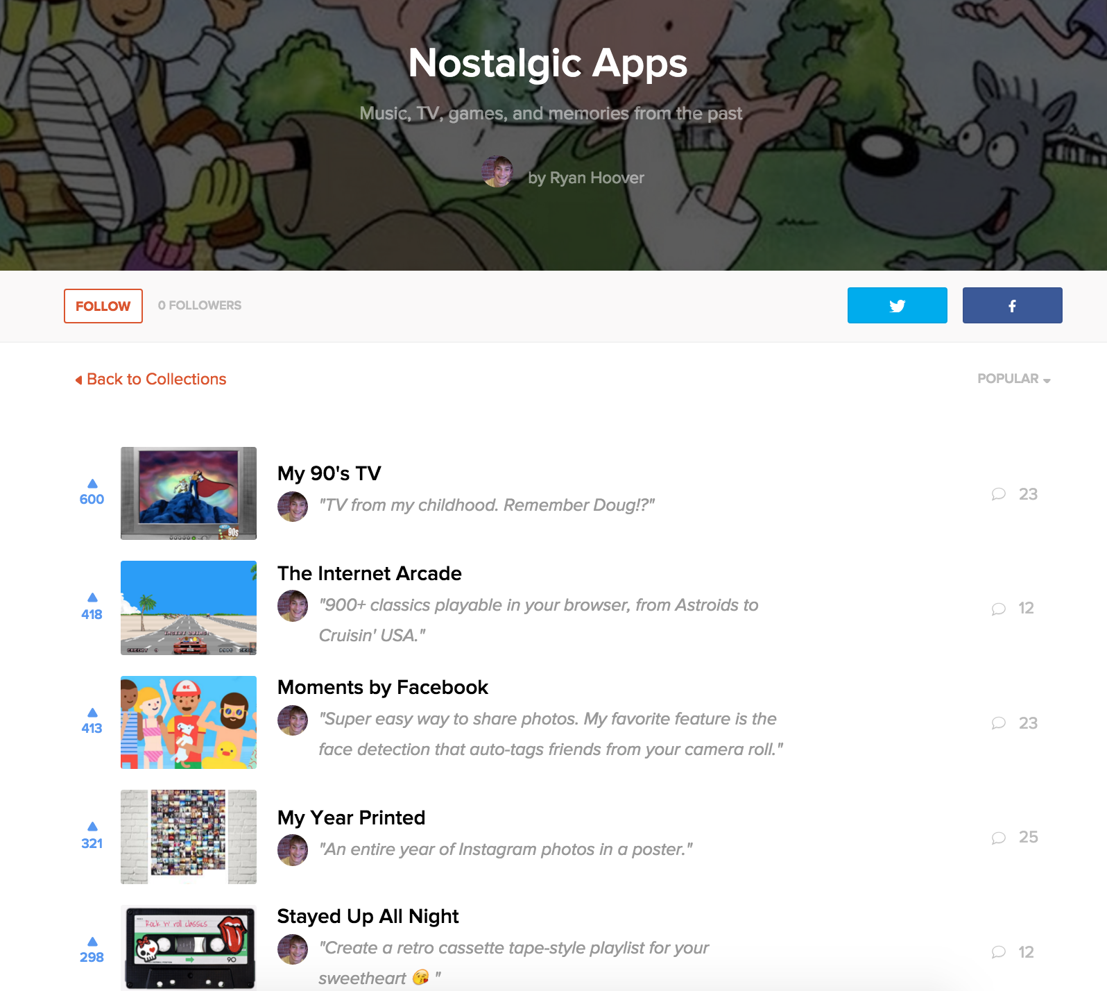 Two feature requests that come to mind: 1) Export collection to CSV (would help me organize meetups easily). 2) Notifications when the product I made is added to a collection - thinking this is for makers, but there's a case for hunters too