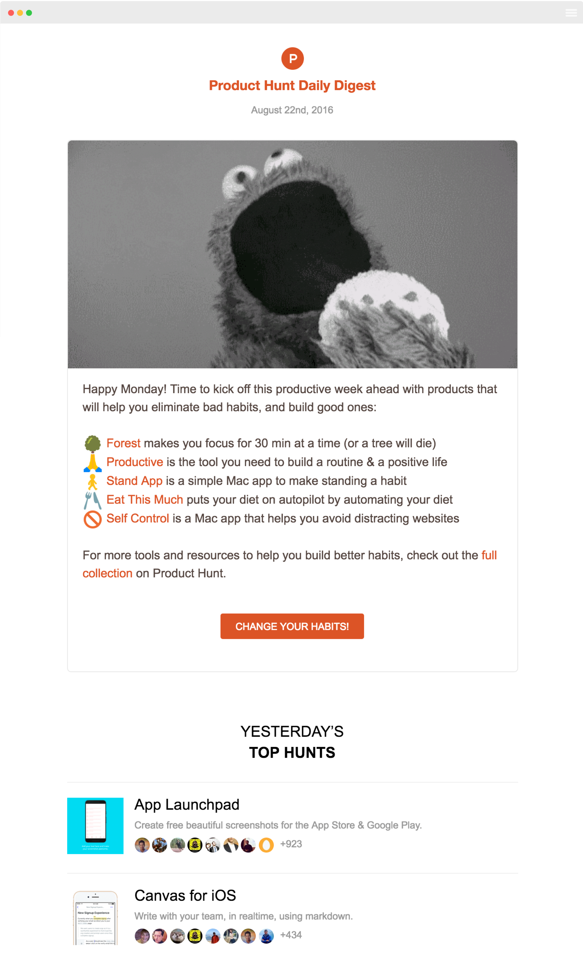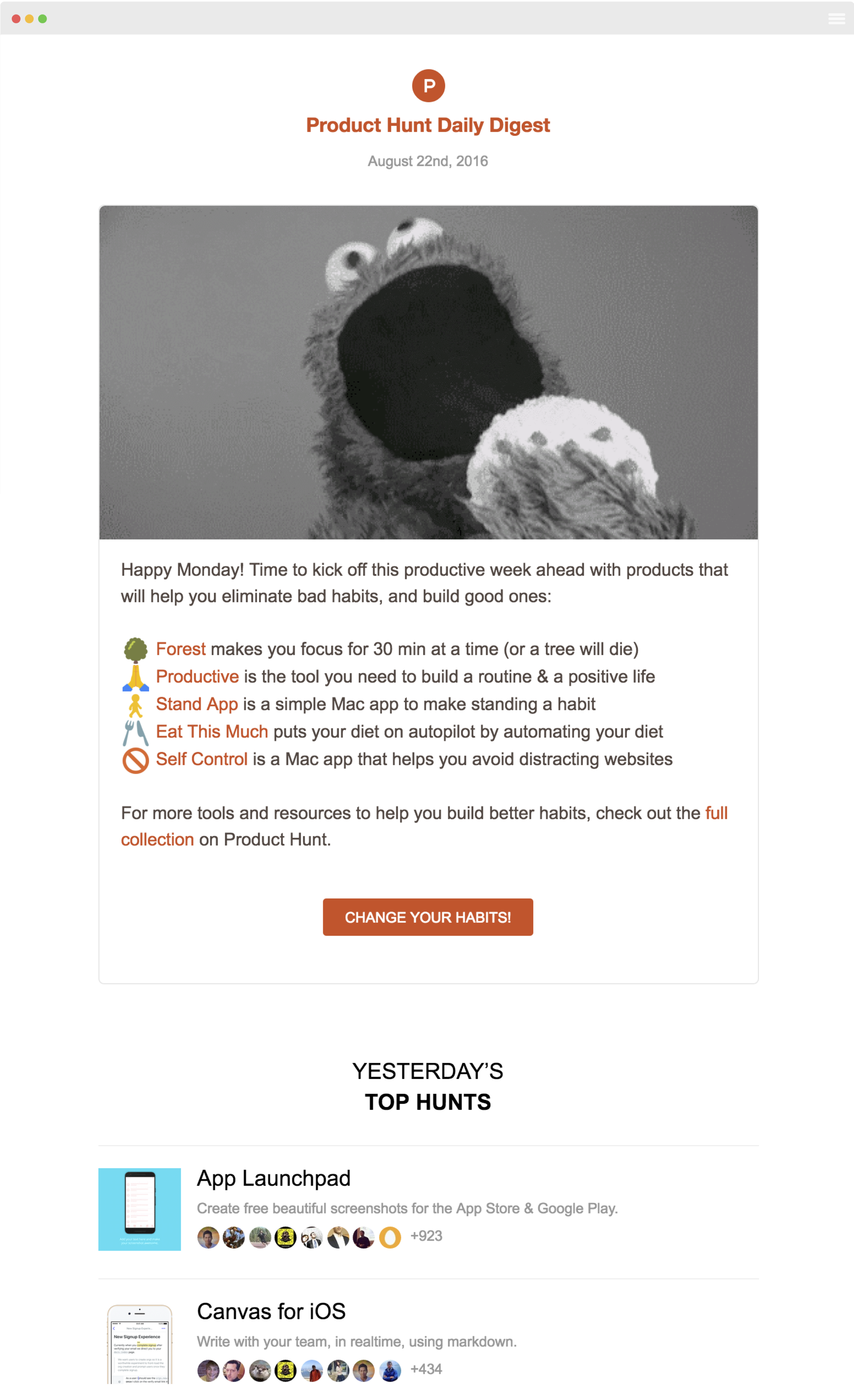 As many of you know, Product Hunt first started off as an email newsletter. Email’s been a big part of how people discover new products today and as the community’s grown and more diverse types of things are posted, we saw an opportunity to start personalizing the daily digest.