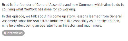 Awesome chatting with @bhargreaves about Common, his come-up story and lessons learned from founding General Assembly, what the real estate industry is like especially as it applies to tech, why he prefers being an operator to an investor, and much more.