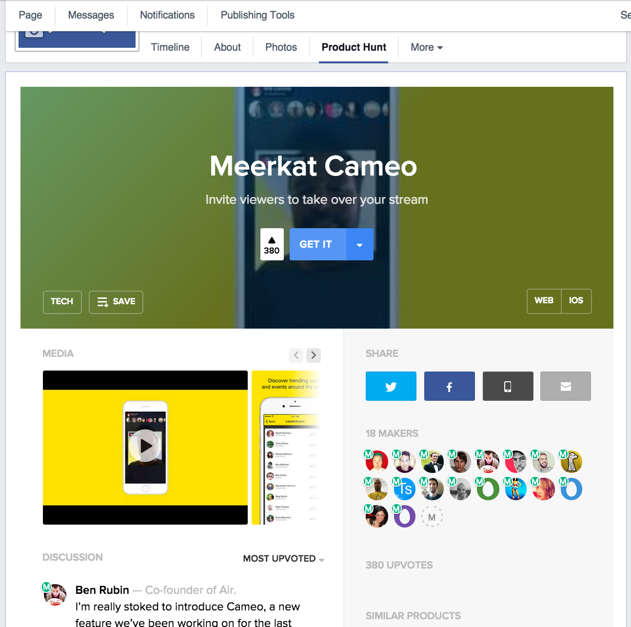 Not going to lie.. this is pretty ingenious. The fact that I can now link any @ProductHunt posts to my pages in facebook.. or just search for anything easily on PH.... @rrhoover @bentossell @timelinekit @robmazur