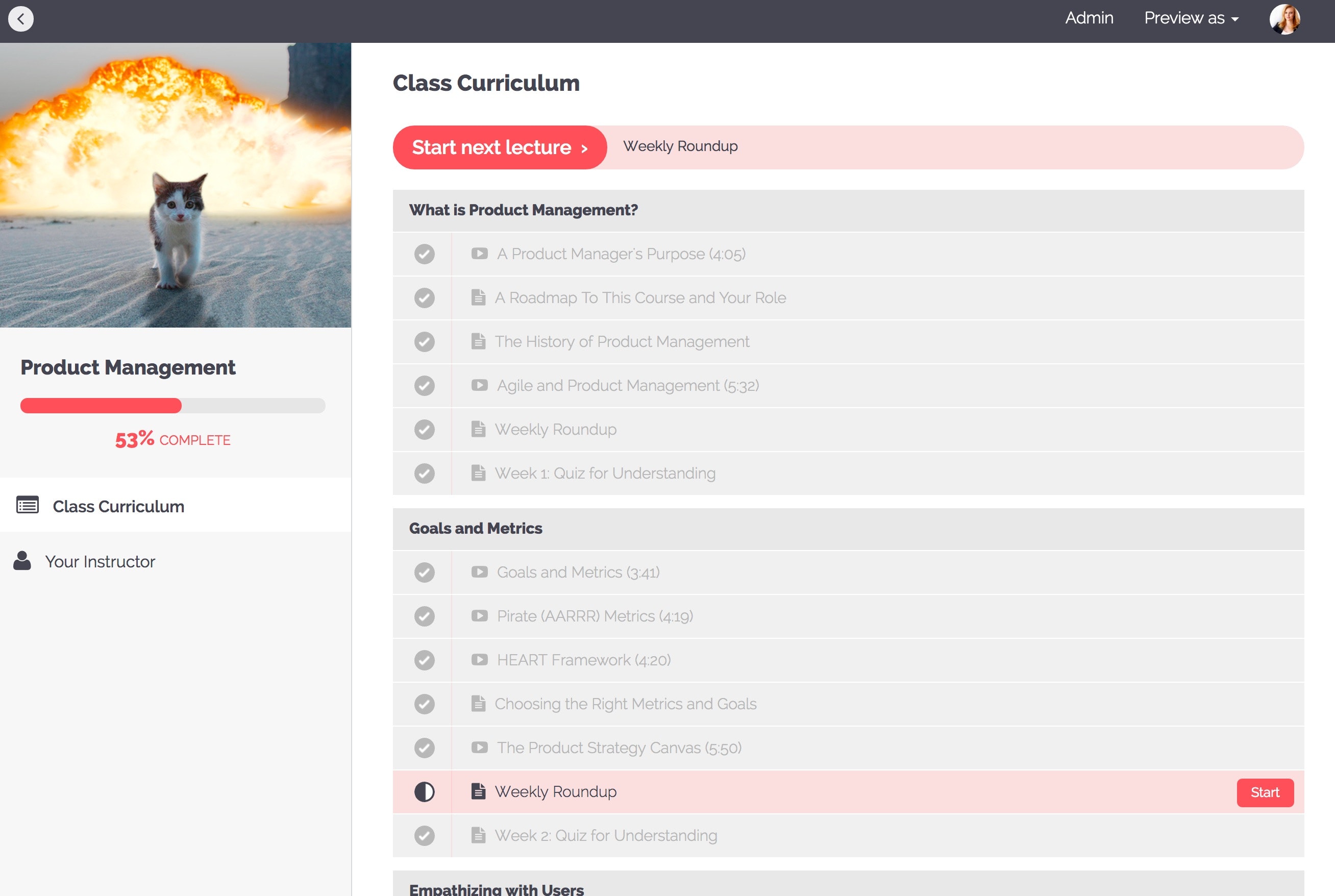 Hi Product Hunt Community - I wanted to let you know about our 10 week online course in Product Management. Product Institute is unique in that it combines the ease and flexibility of an online class with personalized coaching and a built-in community. This two and a half month course offers engaging content to students in the form of entertaining videos, bl… See more