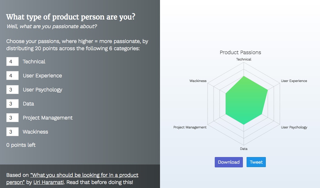 I thought it was a great attempt to categorize the various types of product people. As I was reading it, I wanted to make my own graph. But then I thought, why not make a tool that enables anyone t… See more