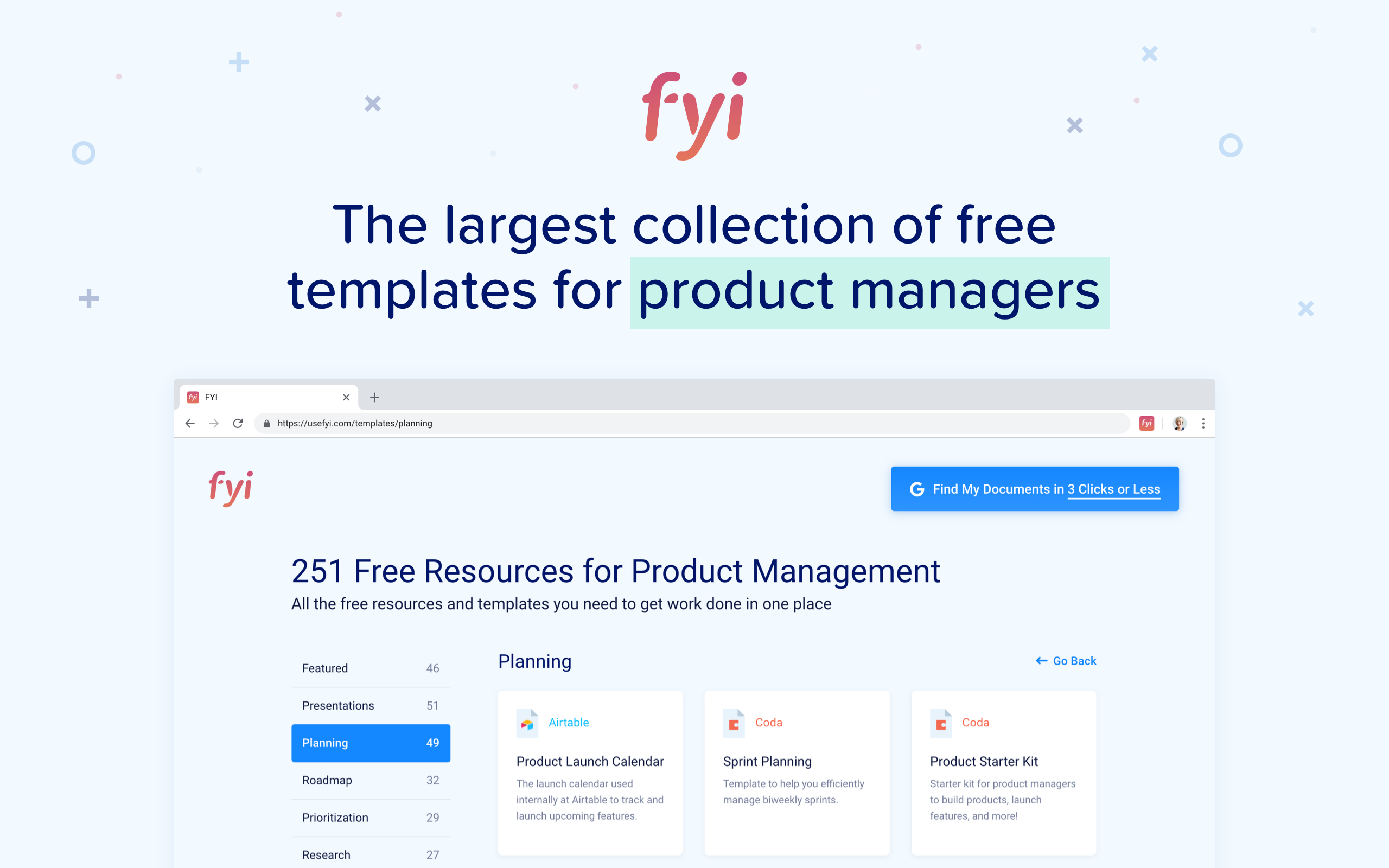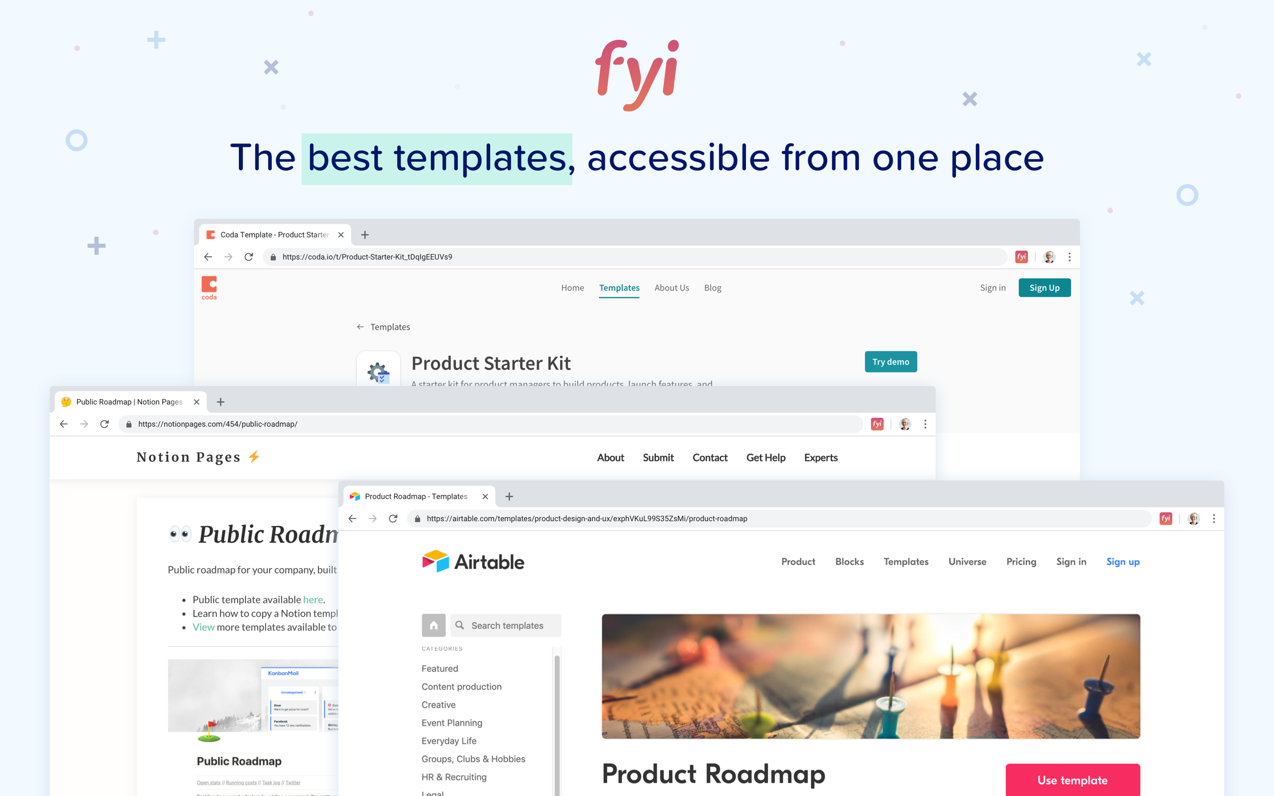 At FYI we thought that every Product person could benefit from having one place to find the best Product Management resources and templates, no matter which tool they prefer to use.