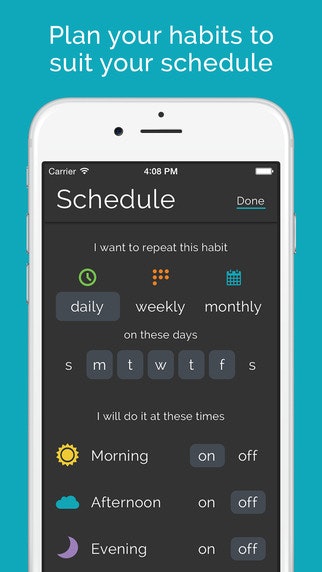 If I could add a feature it would be to randomize the time of a habit as an option. If I create a habit and select morning, afternoon, and evening then have the option to randomize the time it occurs each day.