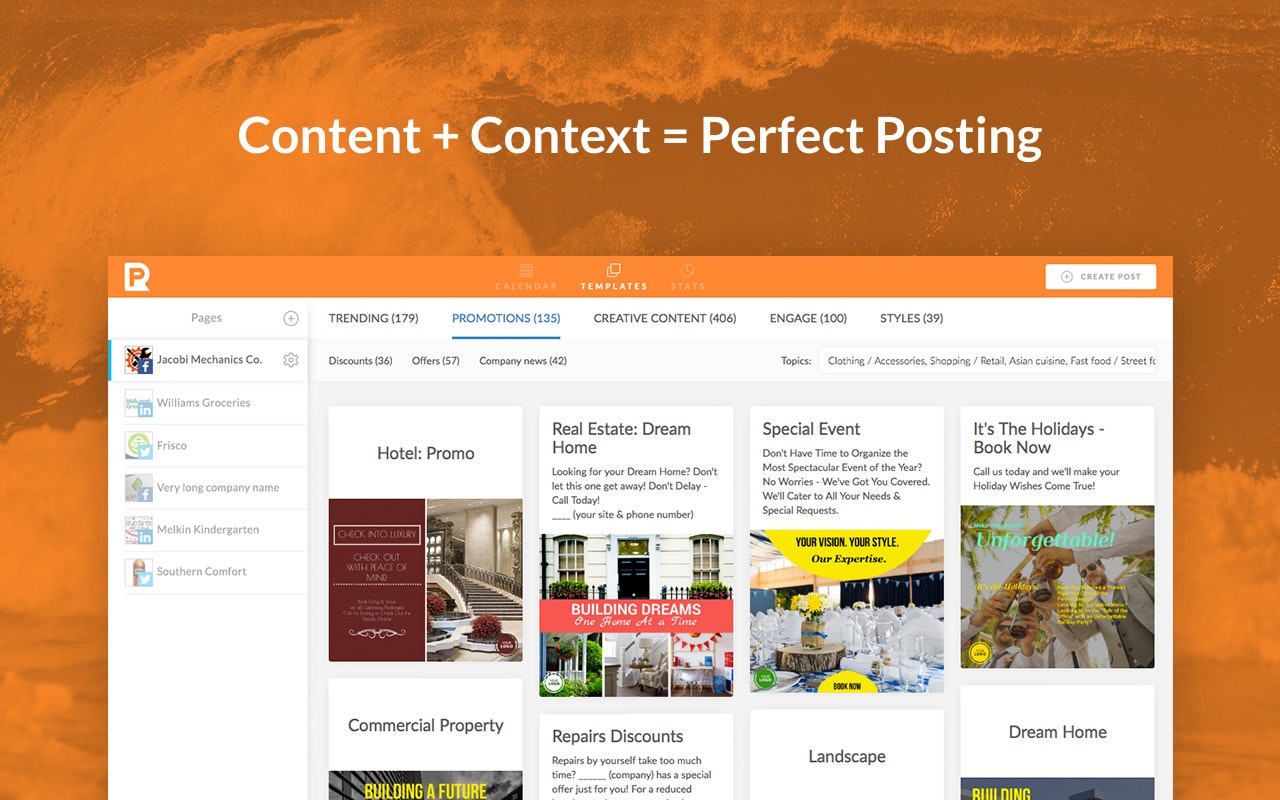 Hey everybody at Product Hunt - our team is here to answer any questions about our features and PromoRepublic in general. Thanks @_jacksmith for sharing this!