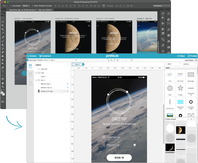 You can now import your Sketch and Photoshop work straight into Proto.io. All your artboards, layers and groups will be imported as they are so that you can start prototyping and bring your designs to life!