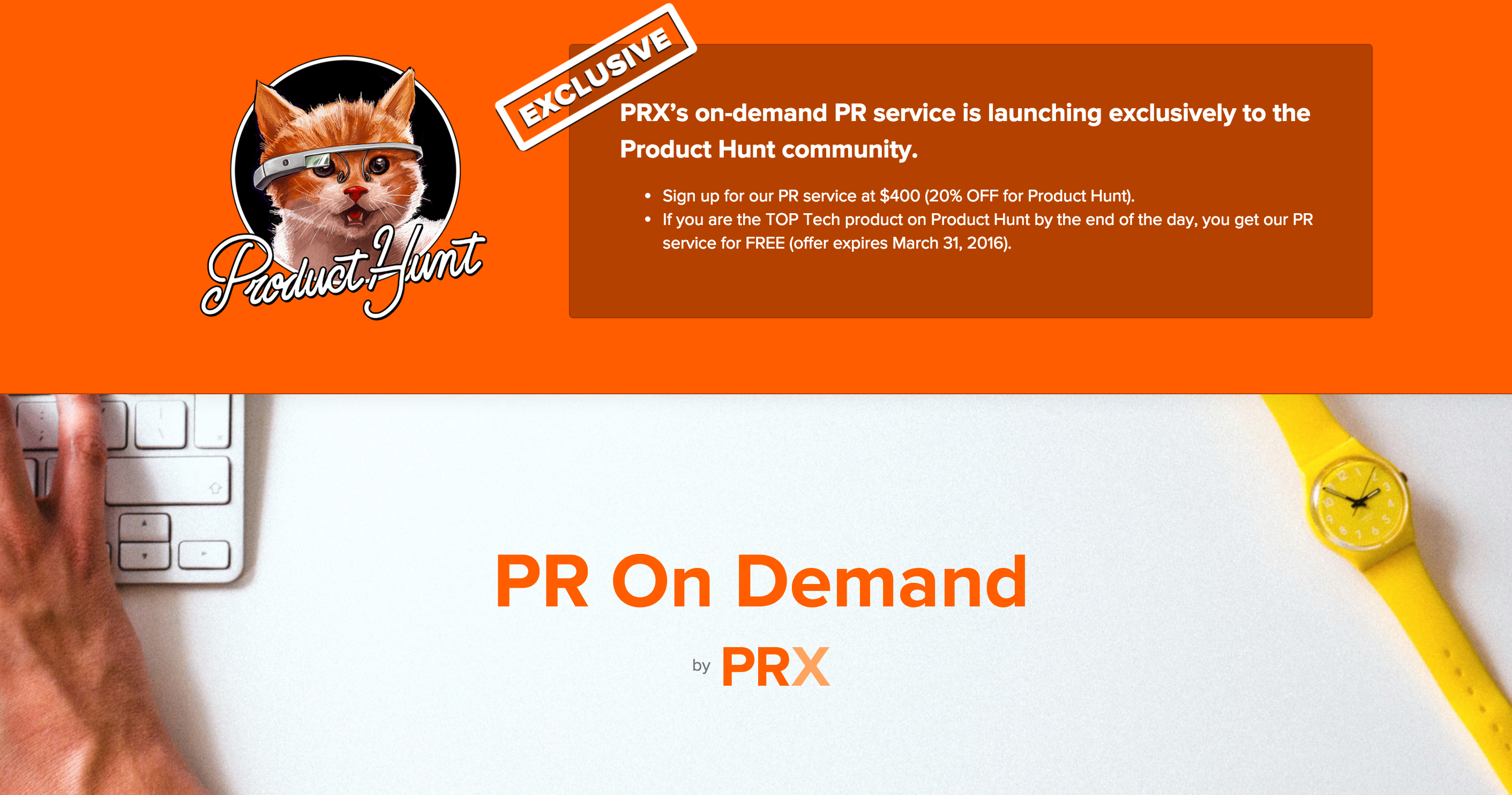 Some exclusive deals just for this community of makers - 1) $400 PR (20% off) and 2) Free PR for the top tech product hunted every day.