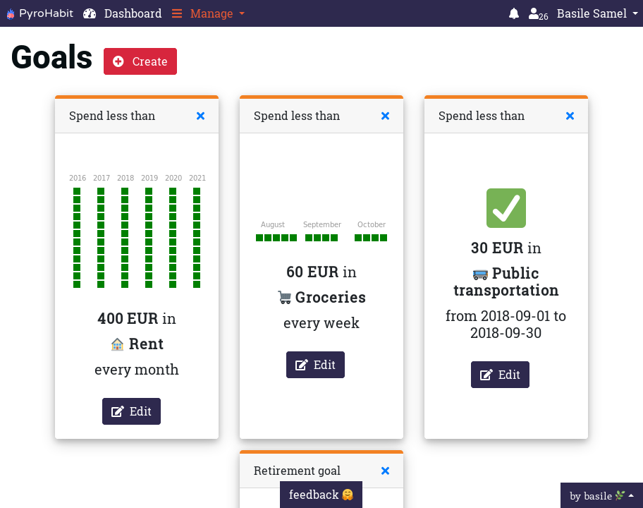 PyroHabit is a tool to help me reach an even greater freedom, by replacing my messy spreadsheets and adding new layers - to save (or start saving), the smart way. What PyroHabit does at the moment :