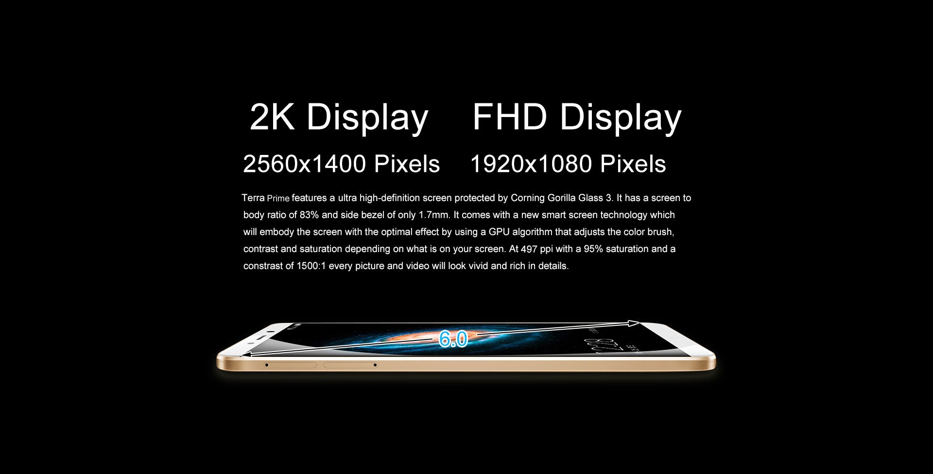 - 6 inch, Ultra-high display (2k) with Corning Gorilla Glass 3.