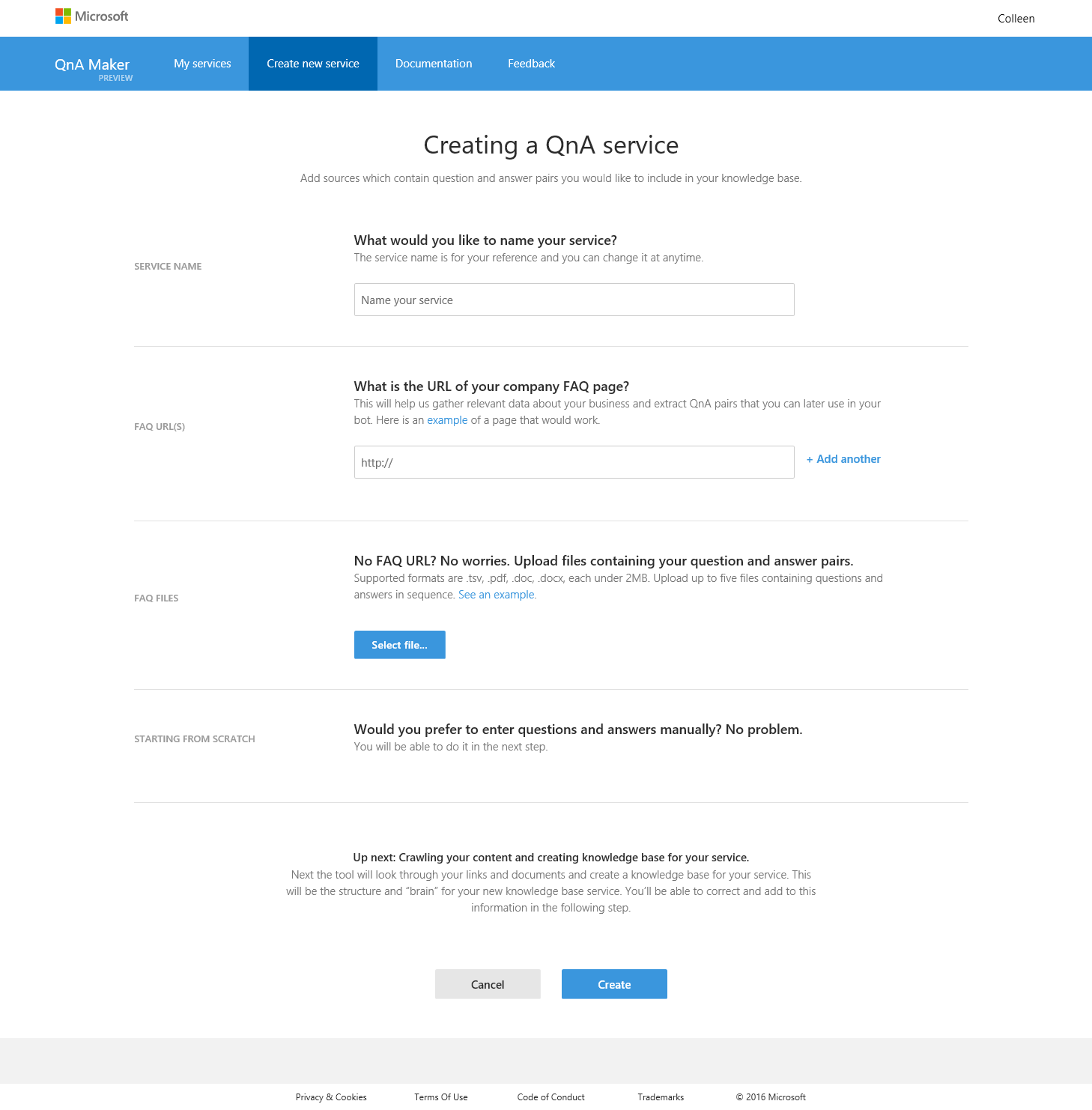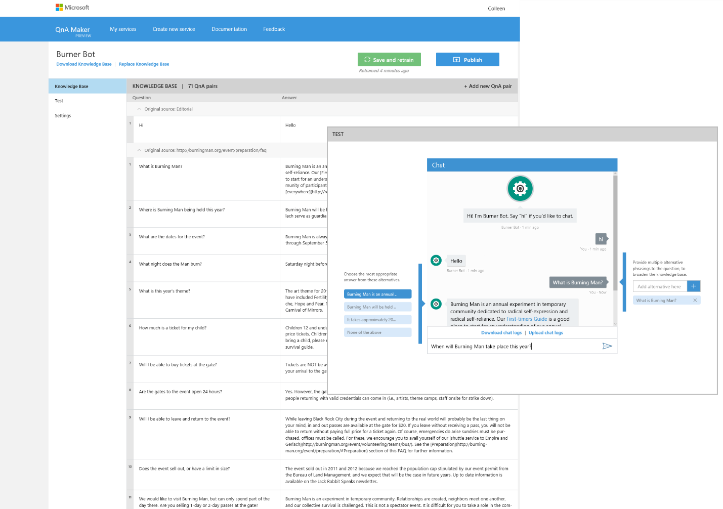 Build, train and publish a simple question and answer bot based on FAQ URLs, structured documents or editorial content in minutes.