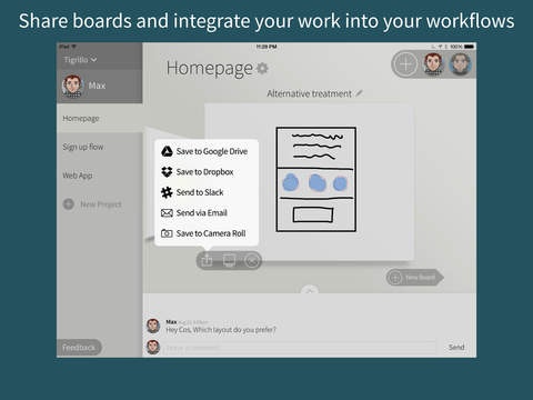 I like how @8bitkid pitches this: "while we can use Slack to communicate, Asana to plan, and Google Docs to write, there wasn't a solution that allowed us to collaboratively draw together. We still share ideas by ripping a page out of a notebook, scribbling on a napkin, or snapping a photo of a whiteboard." Especially w/ Apple Pencil and the iPad Pro coming … See more