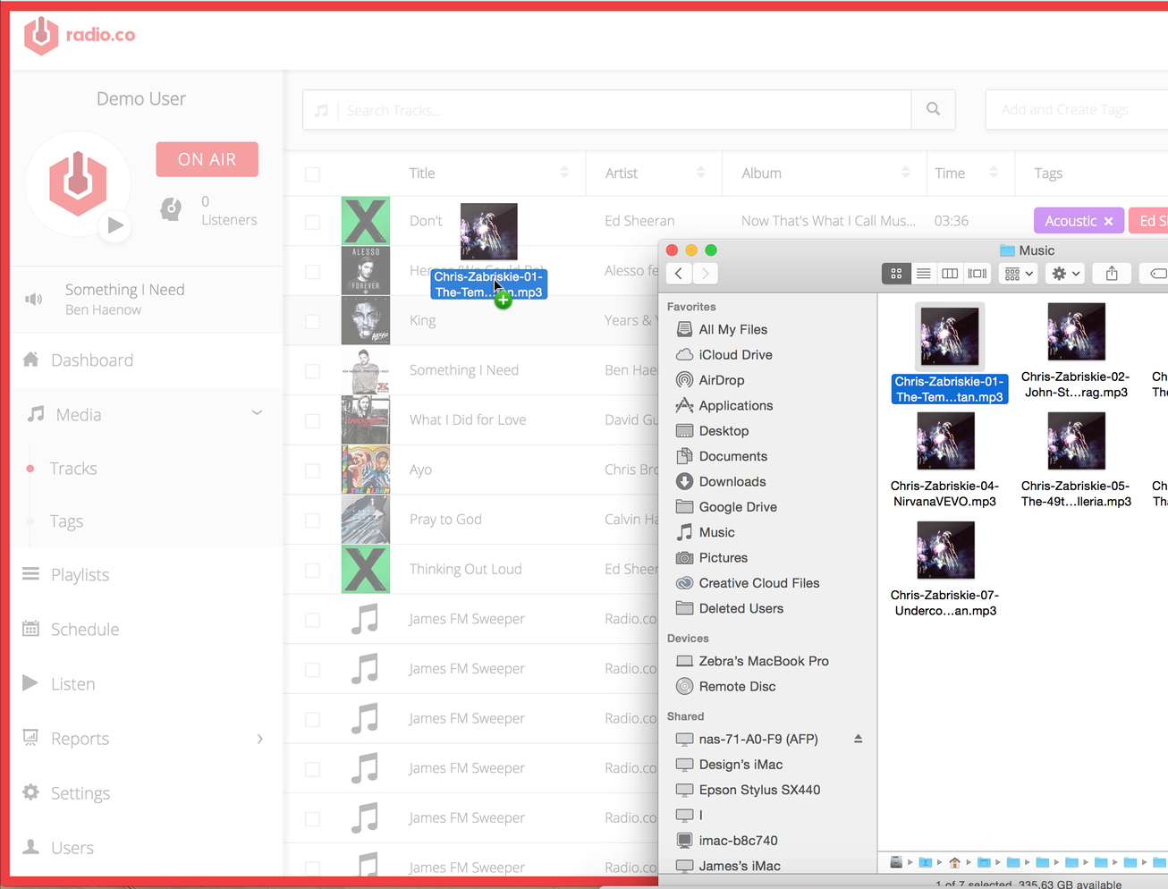 Radio.co is a project we have been working on for about the last year or so. Our aim is to make broadcasting as easy as possible for people. It's built using a combination of Backbone on the front end, PHP on the back end and Node to manage the servers.