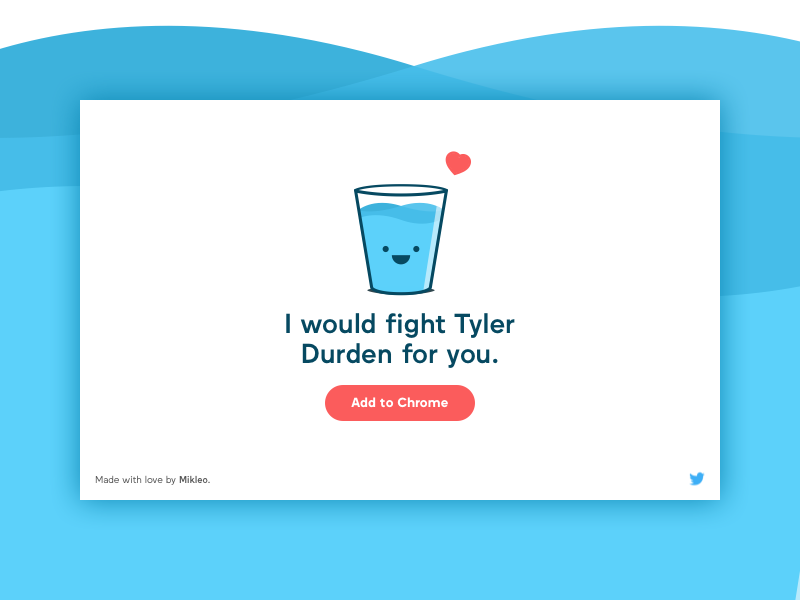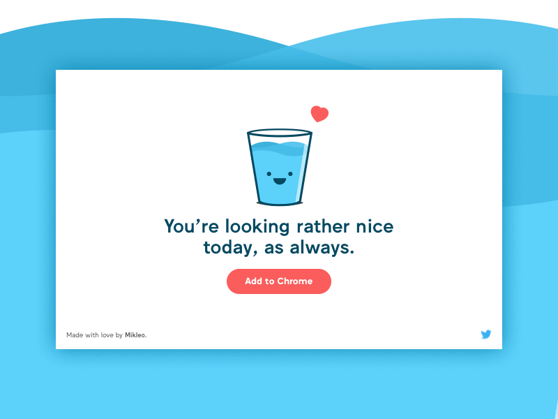 That handsome little glass of water (who we’ve aptly named Glassy) will greet you in each and every new tab, saying something sweet (or a little bit funny) to make sure you don’t stop smiling.