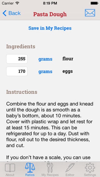I'm a big fan of the book, and this is a pretty great and useful start, but I think the UI could still use some simplification to really reflect the philosophy it represents. If the UI on the calculator/ratio screen were more tailored to an at-a-glance view while I'm in the kitchen, ham-fistedly (get it – ham?) trying to get a quick reference, it'd be a big … See more