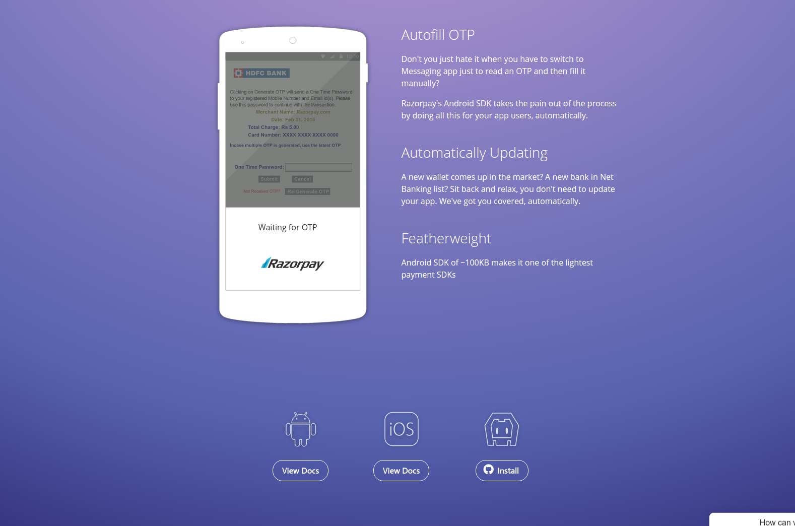 A satisfied customer here. We have been using RazorPay for a couple of months at our new born startup and the integration was really easy. The API/SDK is beautiful and simple, as it should be.