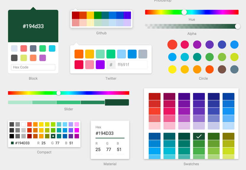 I've needed colorpickers here and there on projects and never really found anything I liked. I kept on coming back to "I really just want to use the sketch colorpicker". Well today is that day!