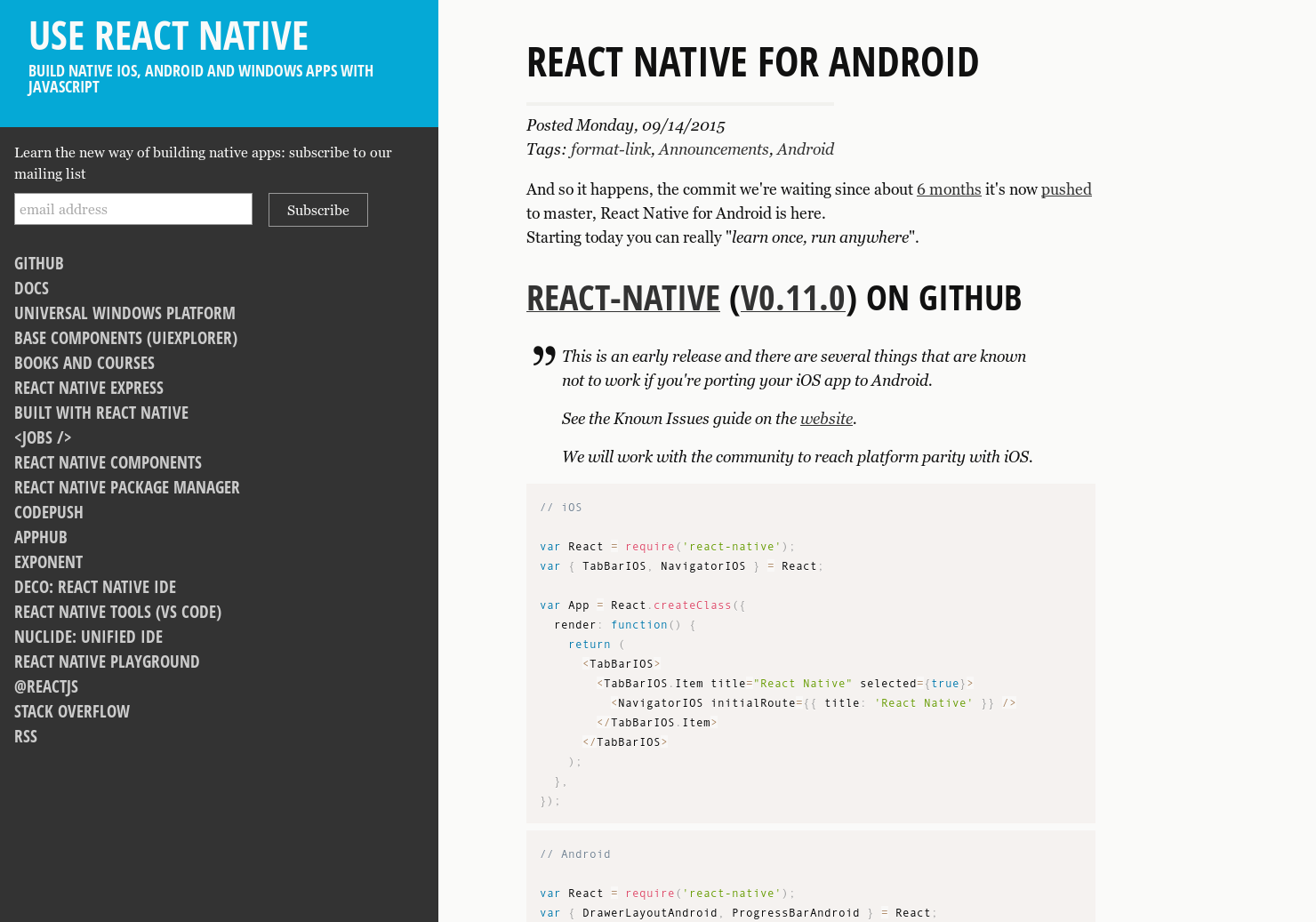 Build native apps with React... for Android!