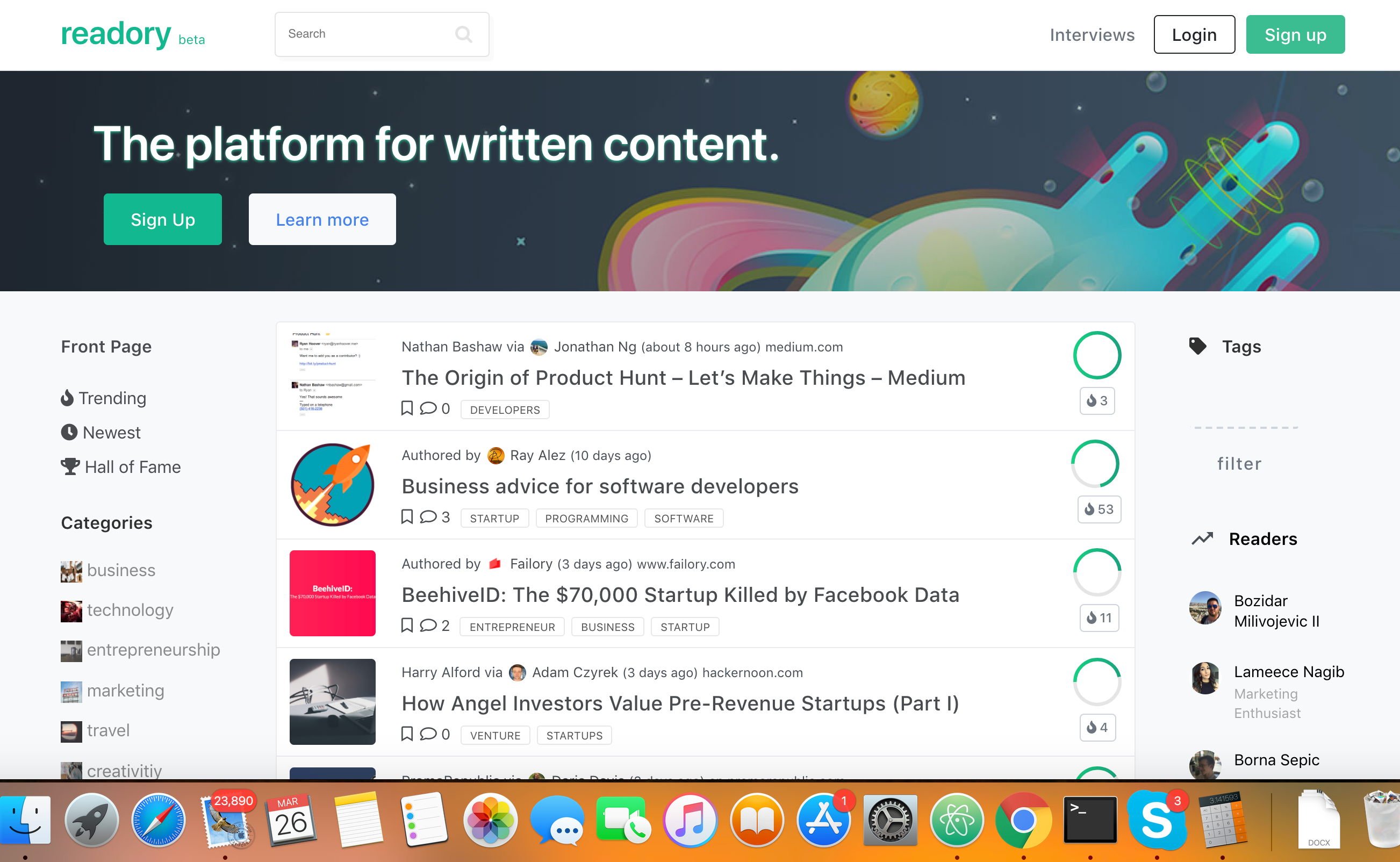 I really enjoy the concept and execution of Readory. I would love to see what the best people on the internet read, and how that informs how they think and create.