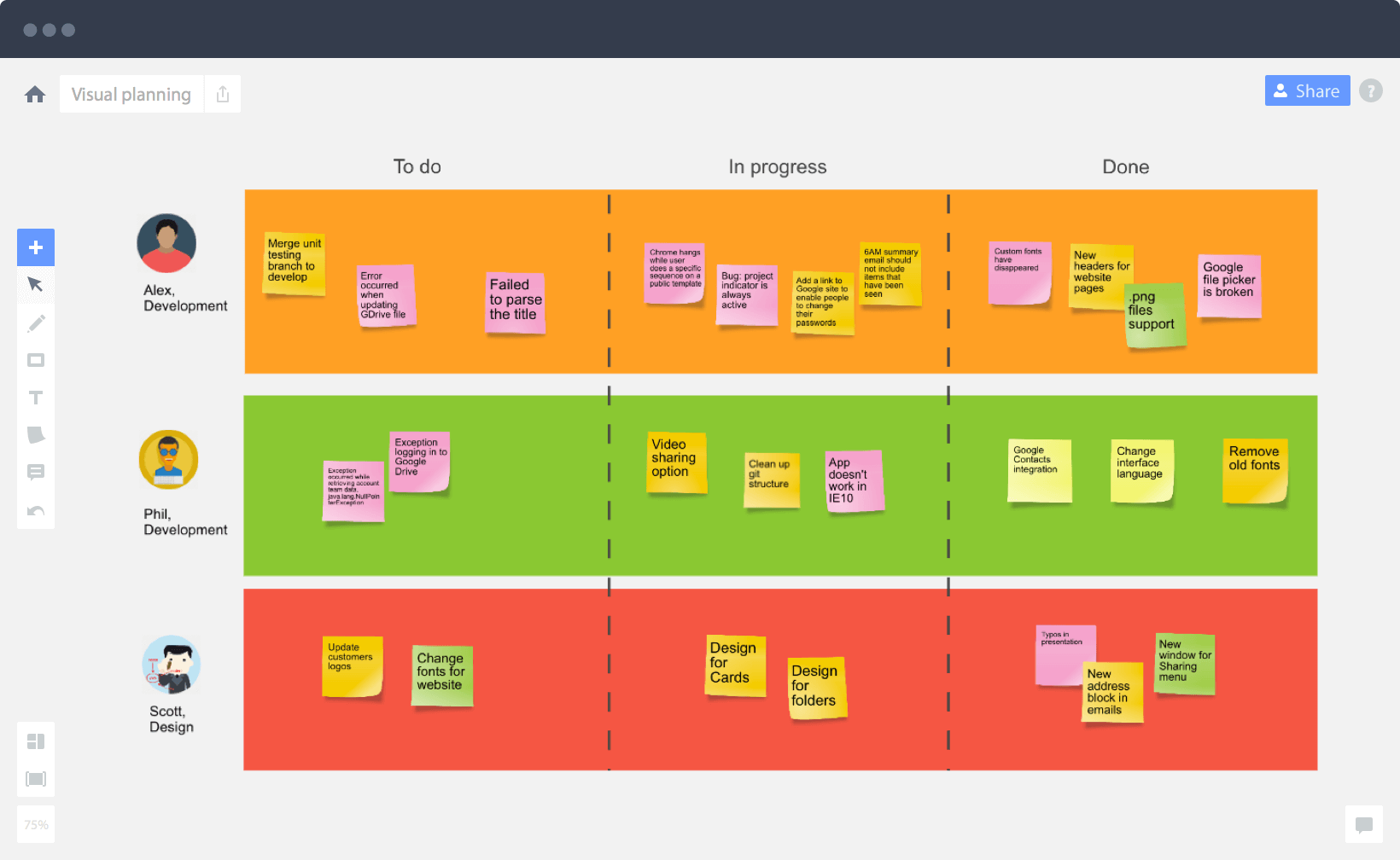 The online collaborative whiteboard platform that enables distributed teams to work effectively together, from brainstorming with digital sticky notes to planning and managing agile workflows.