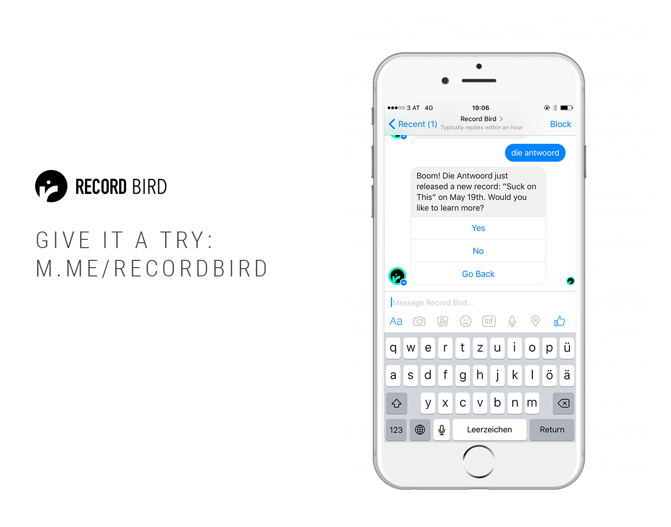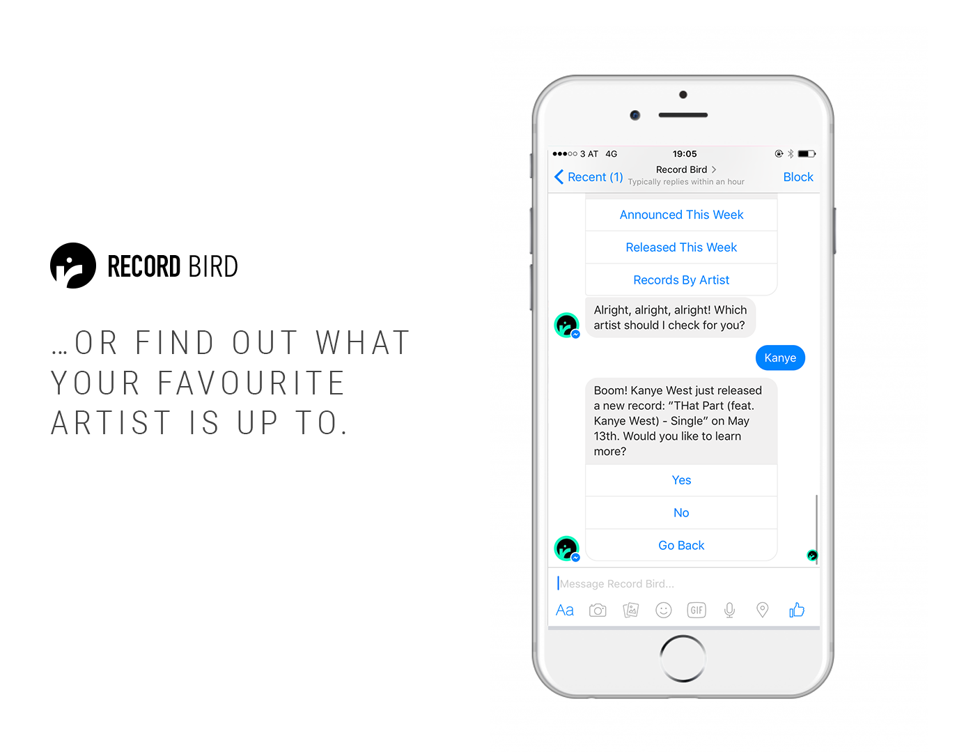 The 🐦 Record Bird team got one of the first music related chat bots approved on the Facebook Messenger platform. You can ask it about new releases or announcements as well as query for specific artists.