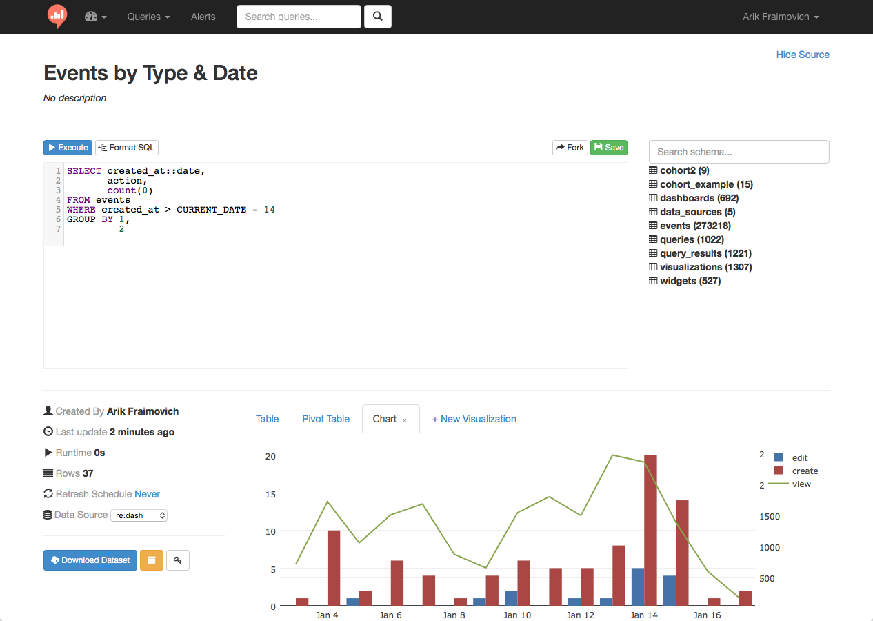 Redash is the free and open sourced alternative to all these business intelligence tools. (e.g. Chartio, Mode analytics, Tableau, Periscope.io)