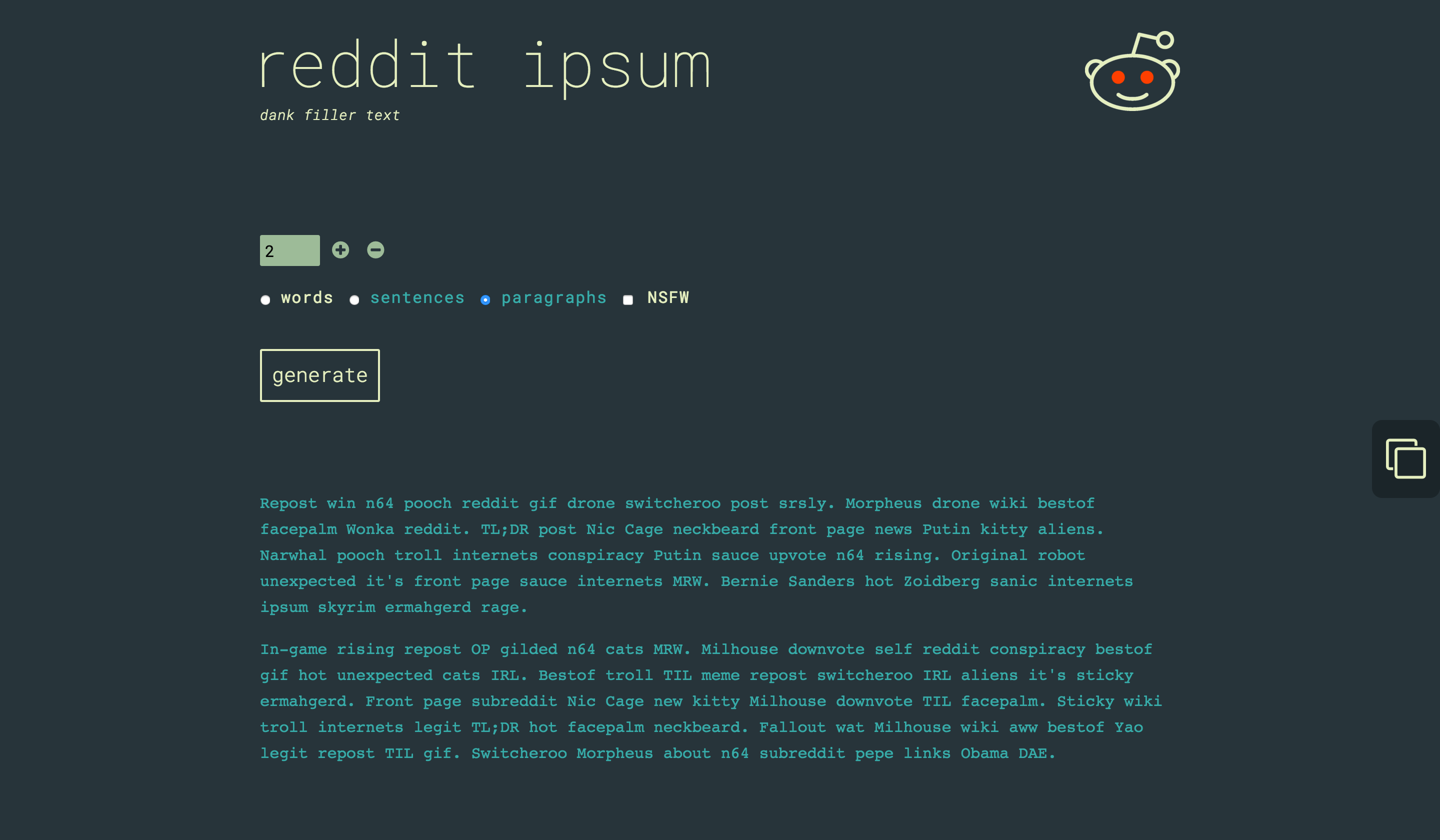 Reddit-inspired lorem ipsum filler text generator
