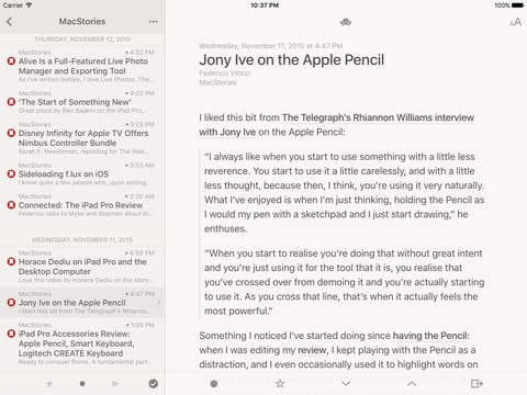 Reeder has often been named the best reader for the iOS (and Mac) and it just got updated with a slew of new features and UI updates.