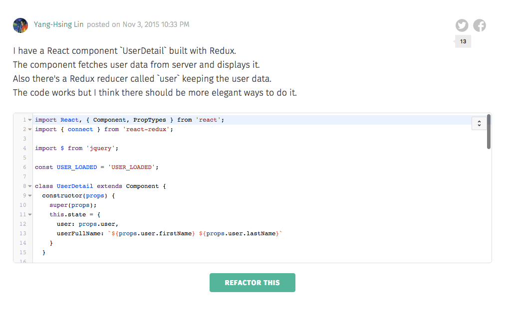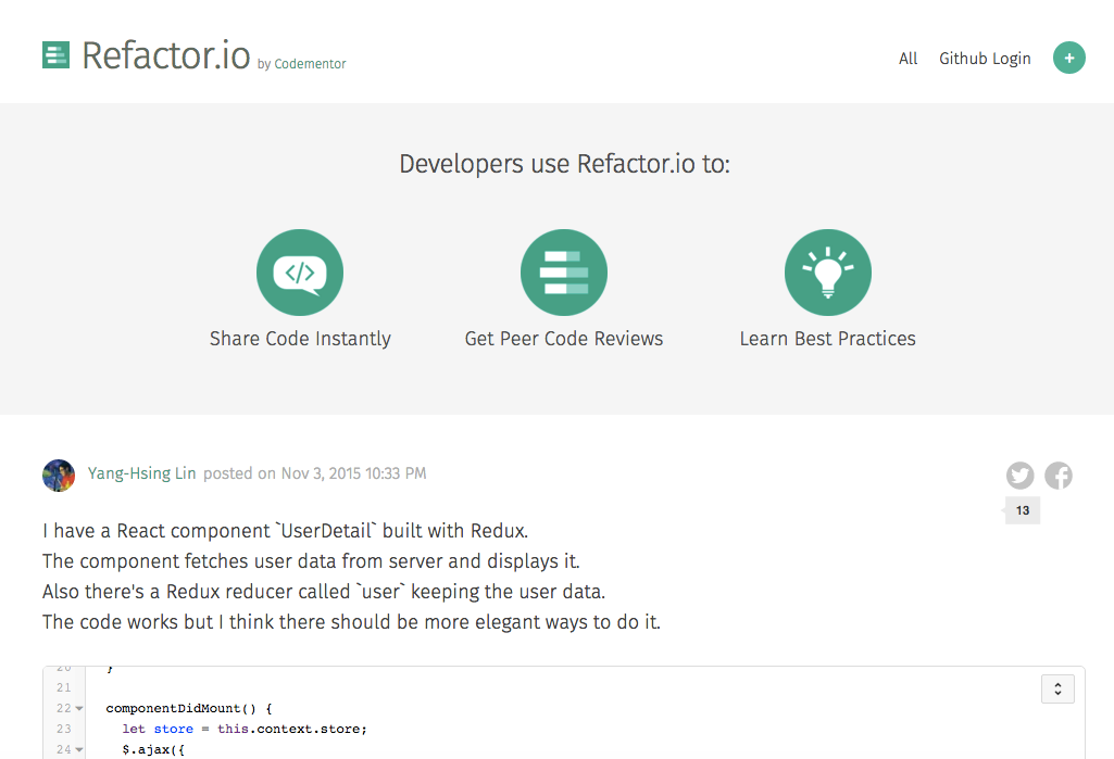 We're launching Refactor.io - a simple tool for developers to share code instantly for refactoring and code review.