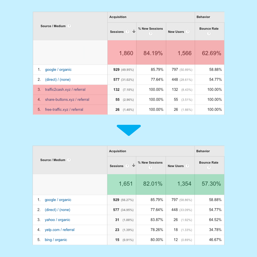 We built this tool because we were frustrated by spam like 'social-buttons.xyz' and 'top1-seo-service.com' mucking up our Google Analytics data. Every time we applied a filter to block one spam bot, a new one pops up a few days later. So we built this for our users and decided to share it - ca… See more