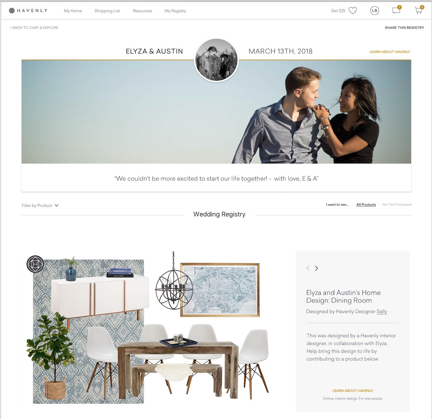 Hi Product Hunt! I’m excited to announce this expansion to our home offerings: Registry by Havenly, the first of its kind registry to pair you with a professional interior designer, providing the most personalized registry service available. With Registry, we’ve created a platform where gifts are curated specifically for your unique style and needs, empoweri… See more