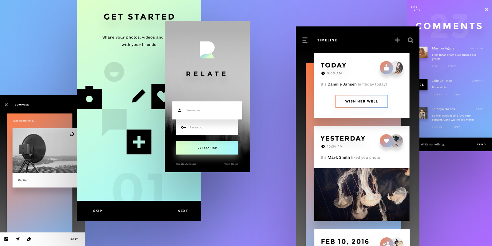 Introducing Relate, a stunningly simple UI kit full of assets perfect for creating your next social app.