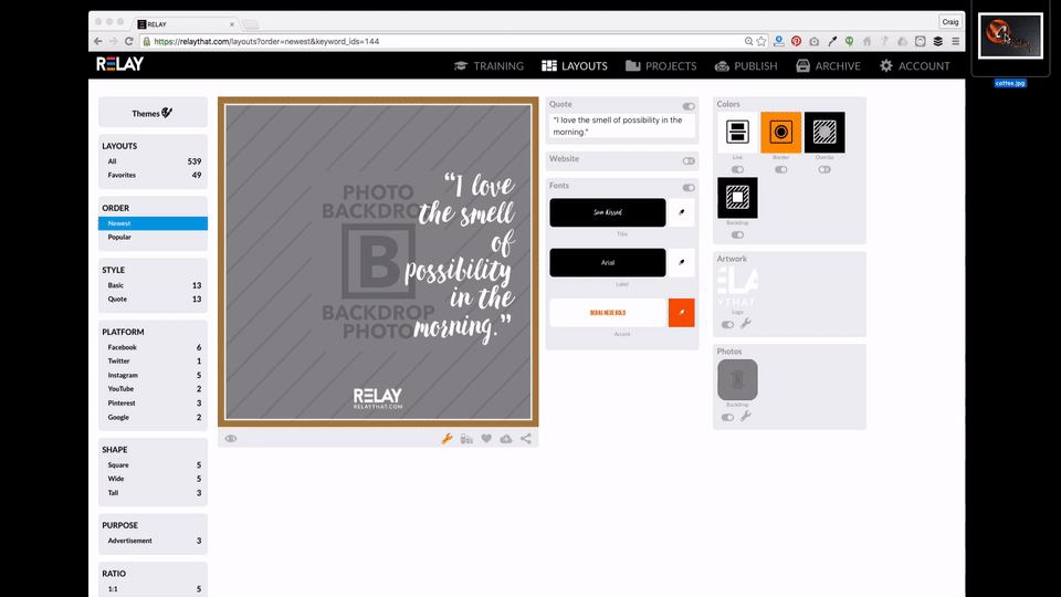 It's been fun watching @CraigCarpenter and @ZengVictor build RELAY. They set out to make producing professional-grade graphics for social media as easy as generating a meme, and they nailed it.