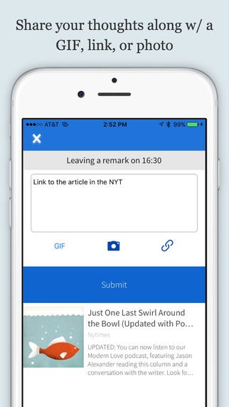 As a producer and host of three podcasts, one of my biggest pet peeve is achieving frictionless ways to engage with the listeners. Remarks allows for insightful, yet fun (GIFs!) interaction. As a host, I can also interject links at specific times, something that is a bit of a pain on Soundcloud and that the lack of chaptering standards precludes me from doin… See more