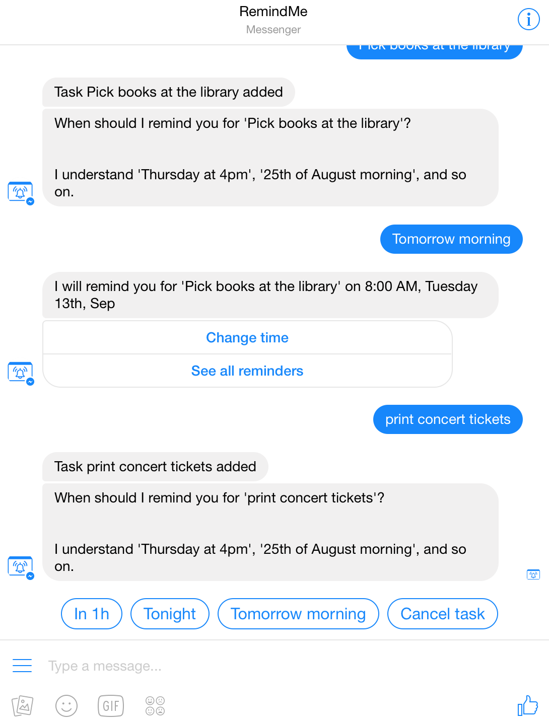 I use RemindMe everyday for my work or my personal life, it’s really cool to get notified on Messenger for a reminder.
