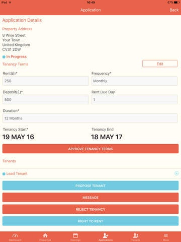 - Review tenant details and request referencing services including Right to Rent checks and maintenance reports