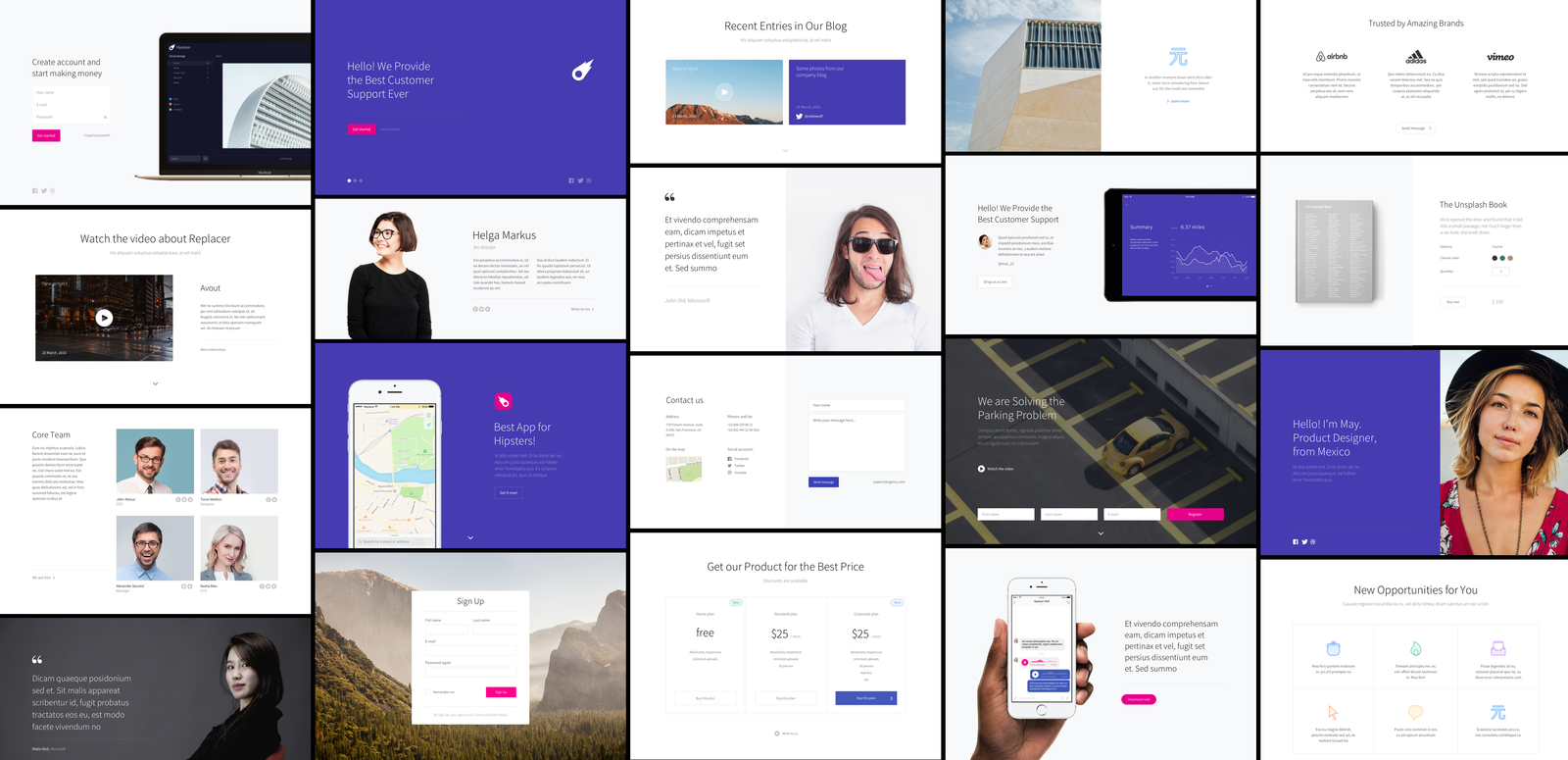 Replacer contains more than 100+ elaborate layouts and 12 Ready-to-use templates in Sketch and Photoshop with featured improvements and updates.