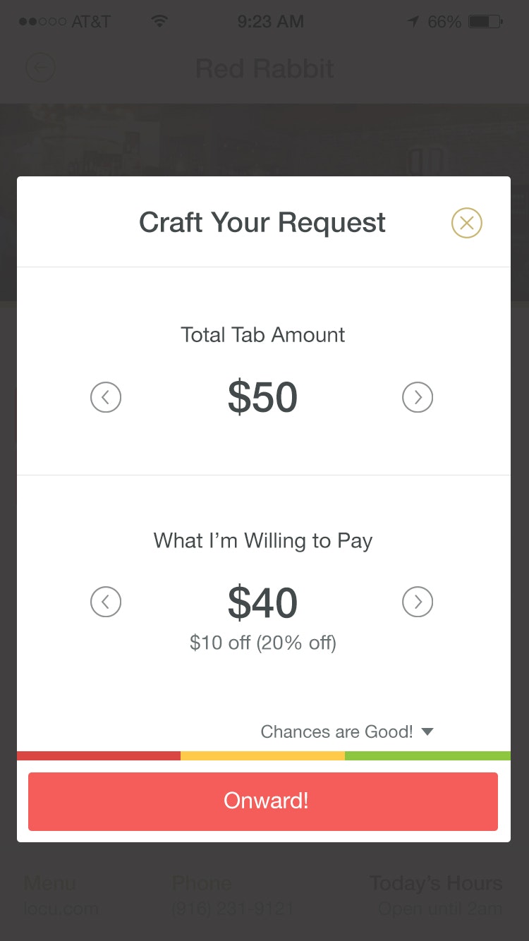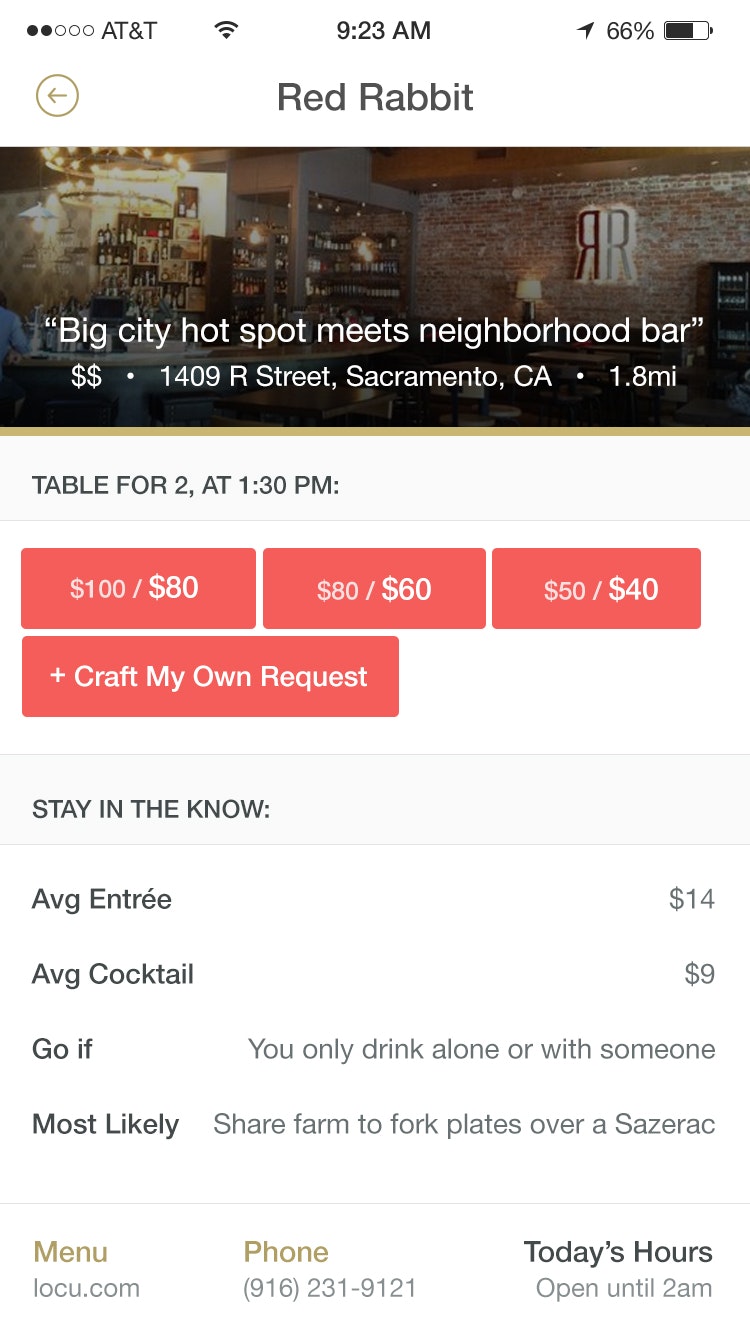 Very interesting restaurant reservation concept. App allows customers to request discounts on menu prices during non busy hours. Dynamic pricing is key here.