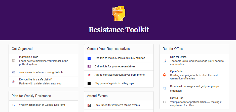 As @seandadashi states, there are so many great resources coming out right now for engaging in politics that it has become difficult to keep up with all of them. This toolkit organizes everything in one place so that you can act instead of react.