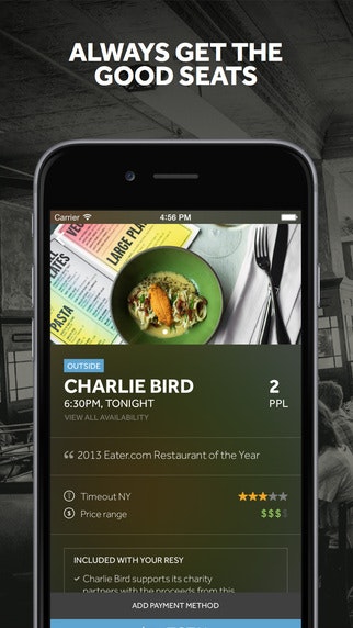 Resy is a mobile app for restaurant reservations. We think the current ways to book a table in places like New York (and LA and SF) are broken, unless you're willing to plan 30 days ahead or just happen to be a celebrity chef's best friend.