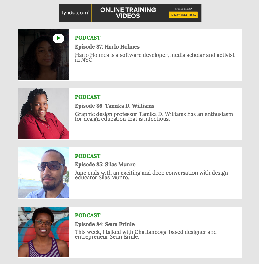 This podcast has been running for more than two years and highlights the careers and lives of Black designers and developers. Maurice also helps run the Black Weblog Awards, and you might have seen his AMA on STEAMrole. You can suggest future guests (including yourself) at: http://revisionpath.com/contact/ It's an inspiring project!
