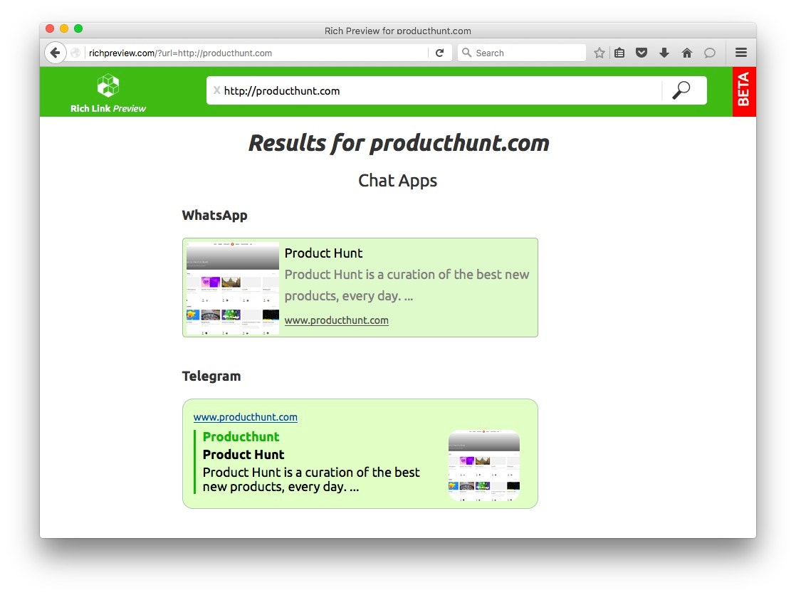 Great hunt! This is an important tool for anyone who wants to be sure his site is viewed correctly from different chat applications. Very nice. Good luck guys!