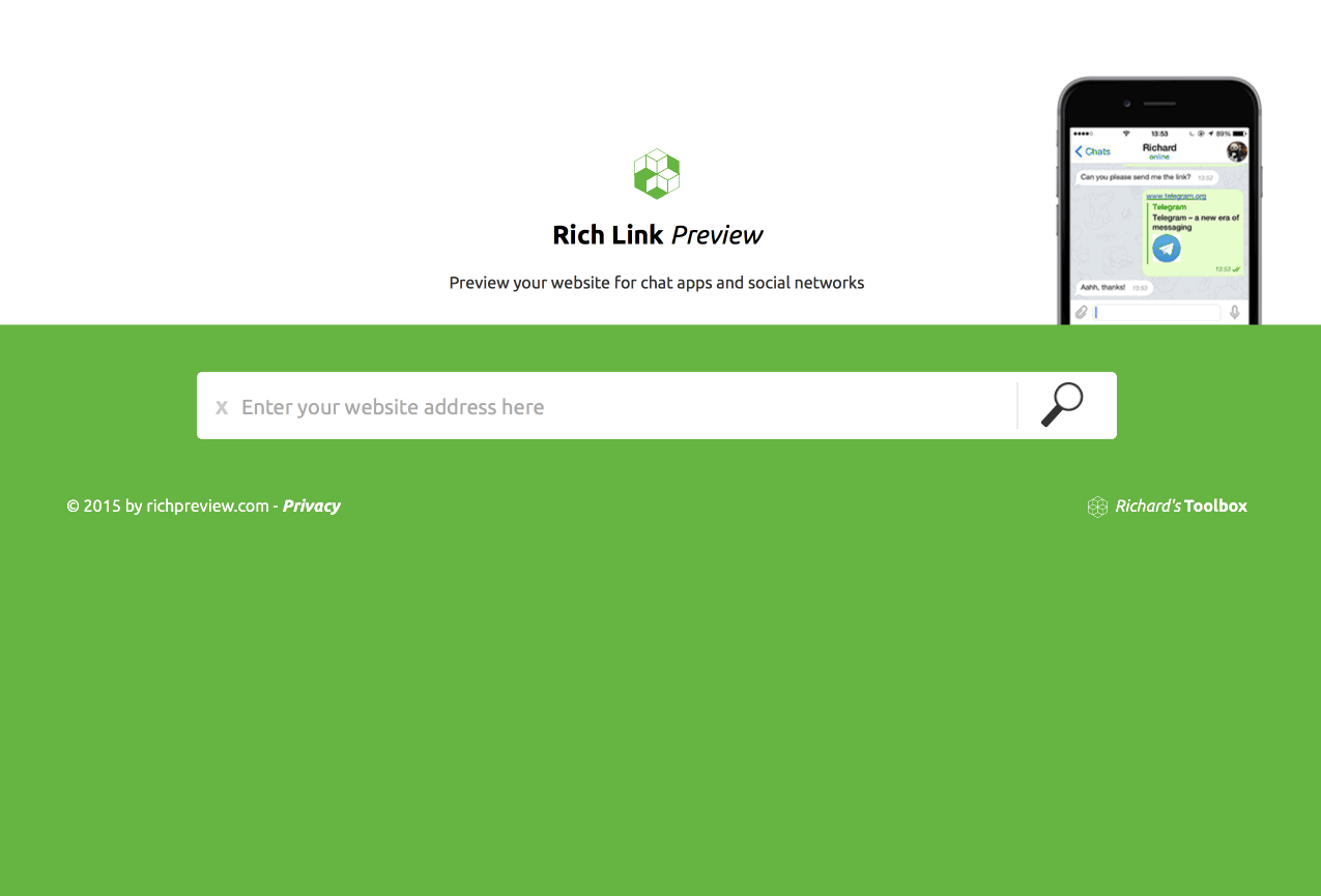 We're a group of developers, an build online tools for programmers. One issue we had was that our tool URL's were appearing in text instead of an image, while shared in chat apps like WhatsApp, Skype or Telegram.