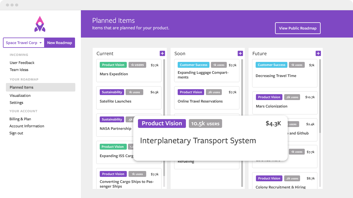 I like that it's very customer centric and focused on existing paying customers. When you had the idea, did you see the struggle as more on proactive customers who felt like they were not being listened to versus product teams who felt like they weren't getting enough data?