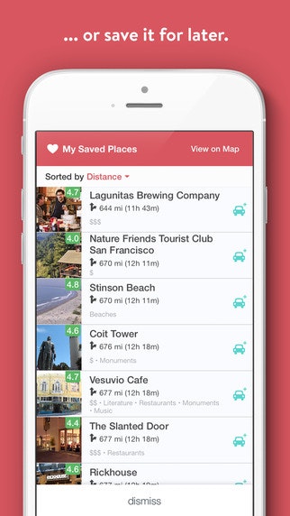 - Swipe-able place discovery "cards”.