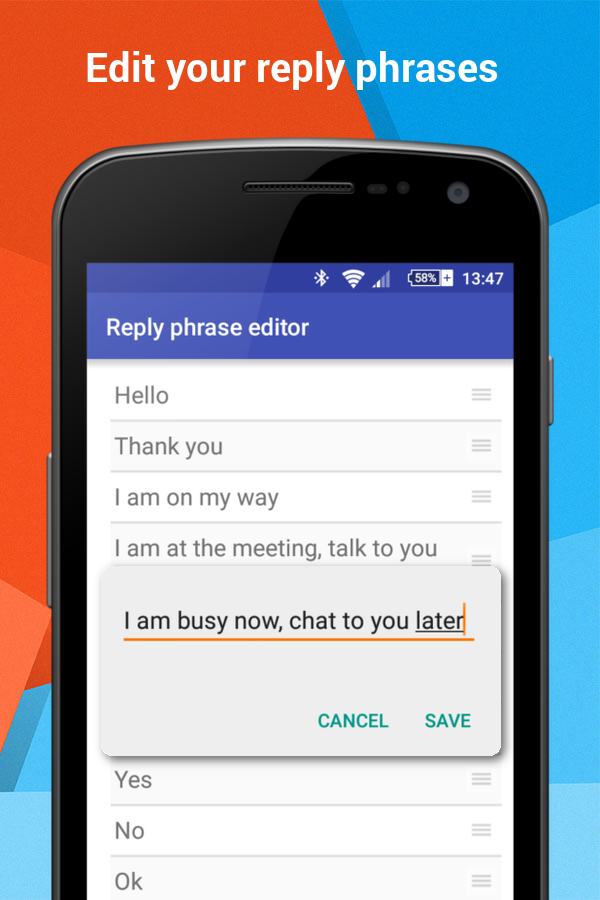 It works like this: when you receive an instant message or sms, Rocket Reply brings a list of predefined phrases allowing you to select a response with a single tap.