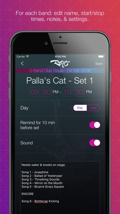 There are plenty of apps that help you plan for a live event. RockIt! is the app that helps you manage the live event schedule while it is in motion! RockIt! helps you answer these questions: