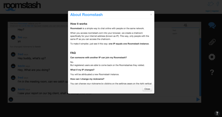 The idea is simple: go to roomstash.com in your browser and a chatroom will be specifically created for your IP address. It doesn't require any account whatsoever, it simply creates a chatr… See more