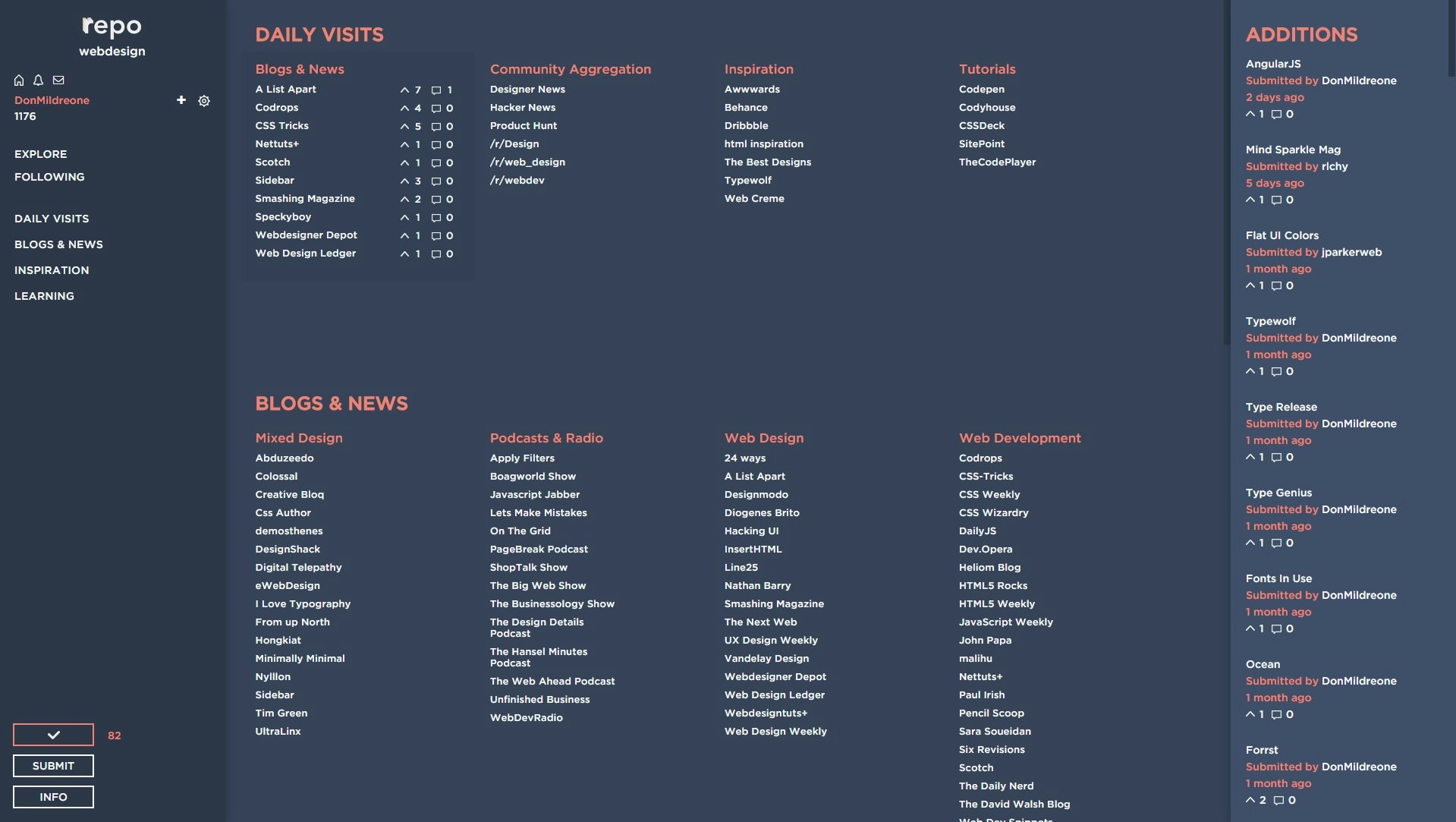 Repos are collections of high quality links on a given subject. No more using Github/other services that aren't made for lists, rrrepo houses all the best lists on the web.