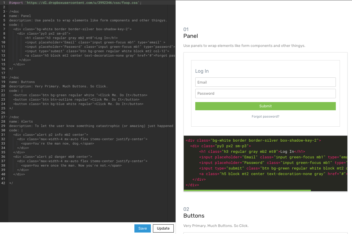 Stylesheet to styleguide, instantly