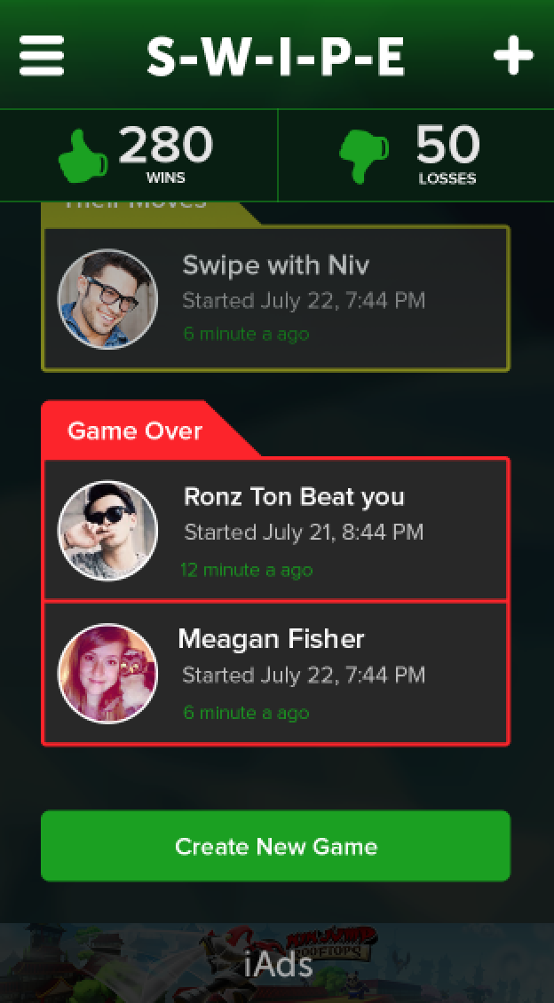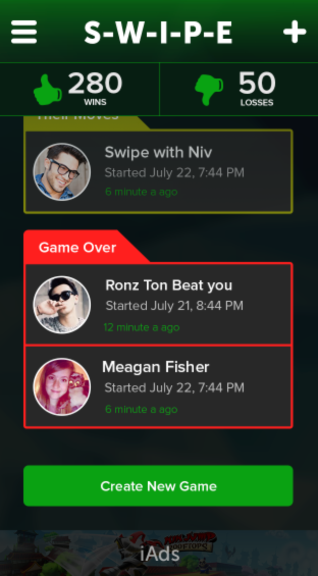 S-W-I-P-E an interactive game of memory that involves two users playing against each other in an attempt to get the other player to spell out S-W-I-P-E. Users will create a gesture pattern on a 9 point gesture pad as complex as possible and send it to their opponent. Your opponent then will view your pattern in a replay and attempt to recreate your pattern e… See more